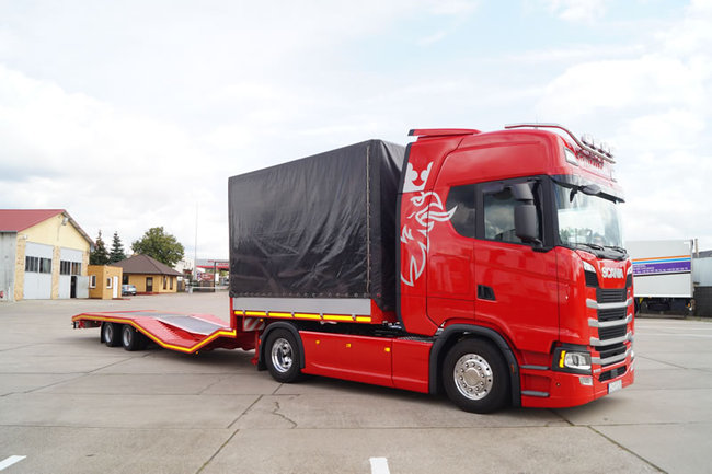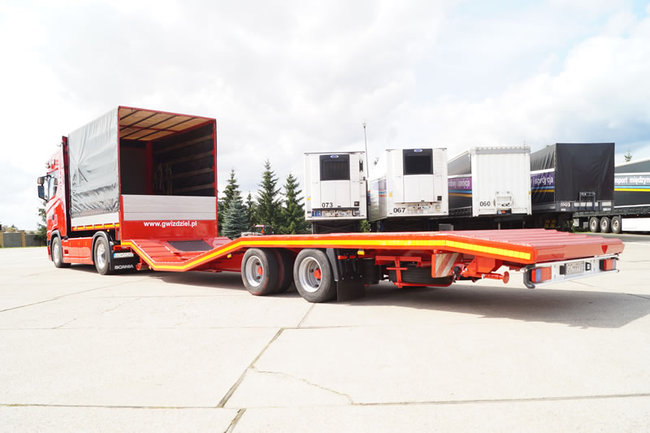 Naczepy specjalistyczne do przewozu ładunków ponadgabarytowych – kombajnów, samochodów ciężarowych, samochodów osobowych.